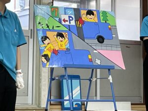 全員が並んで横断歩道を渡る練習をしました。