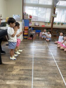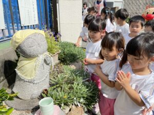 全園児でお寺朝礼をしました。
