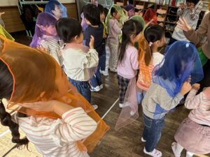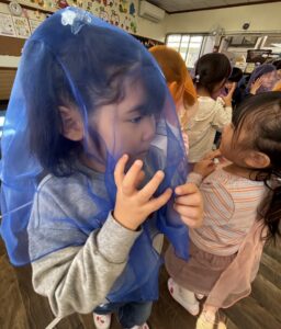 先生からもらったスカーフでどうするのかな?