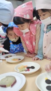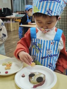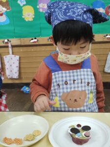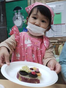 次はお菓子をどこにのせようかな?