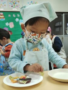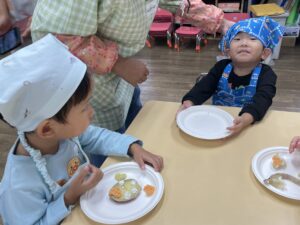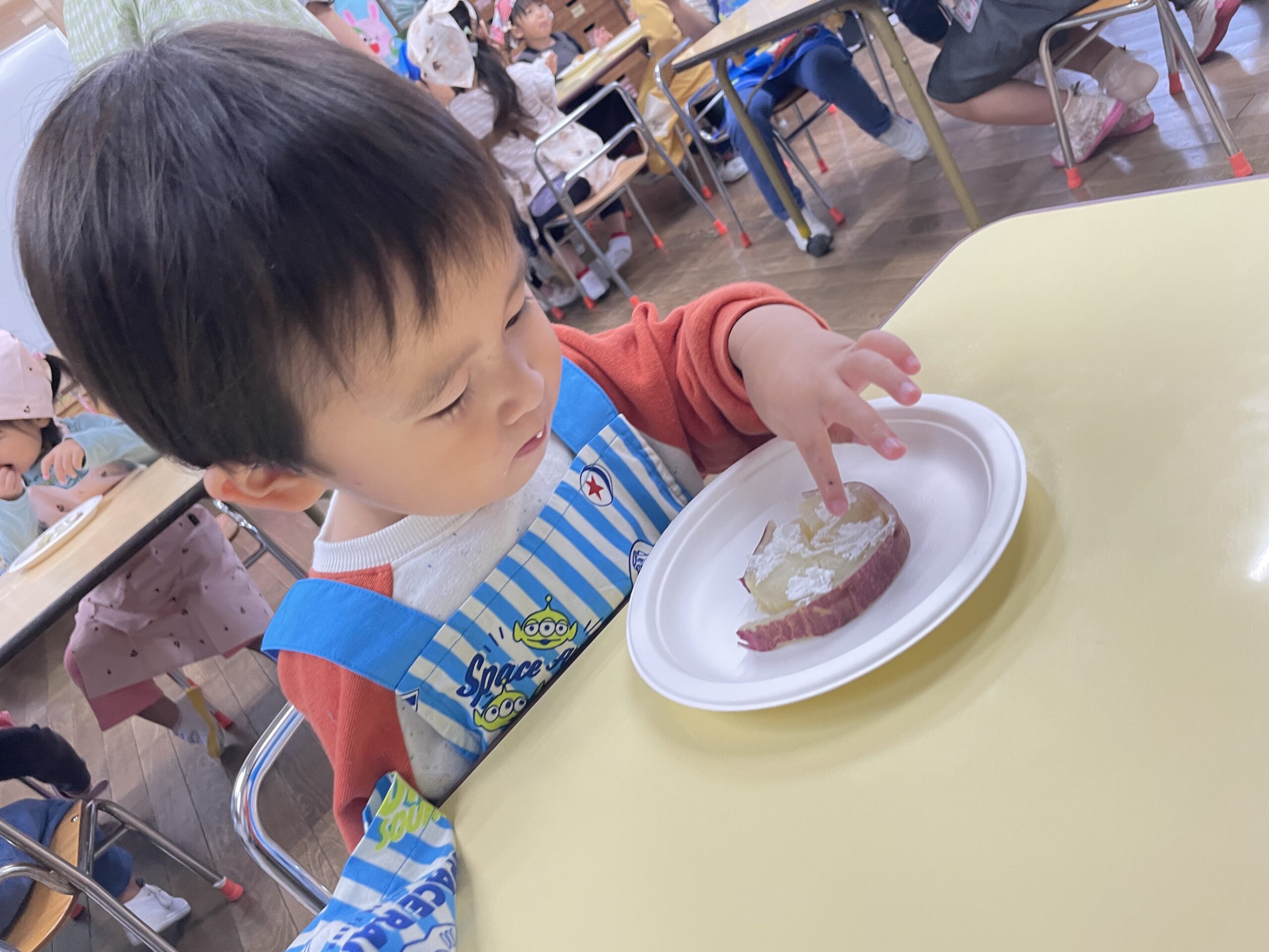 みんなで収穫したおいもを使ってクッキングです。