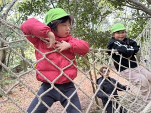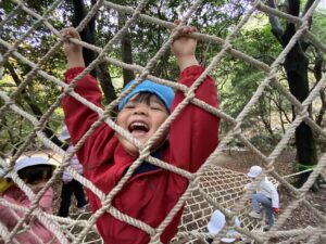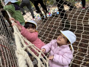大きなネットにのぼってがんばるぞ!