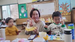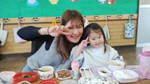 一緒に給食を食べたよ!