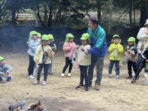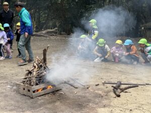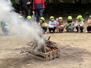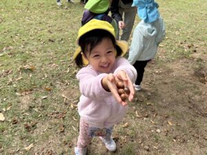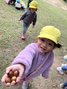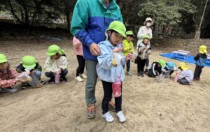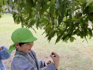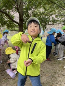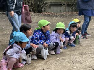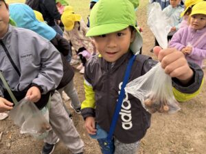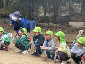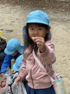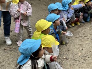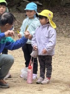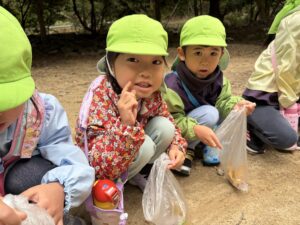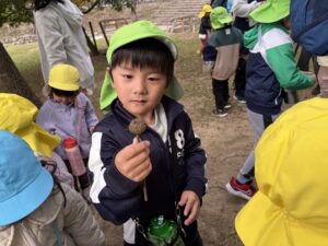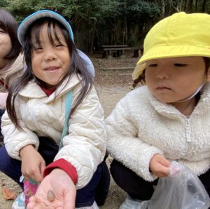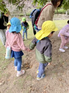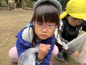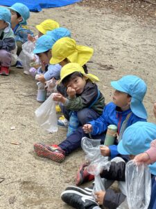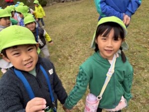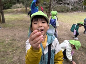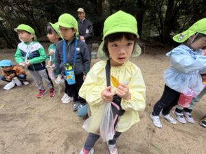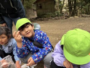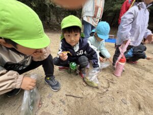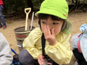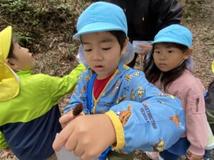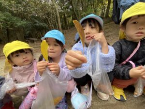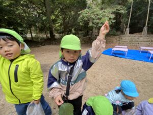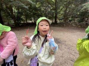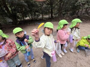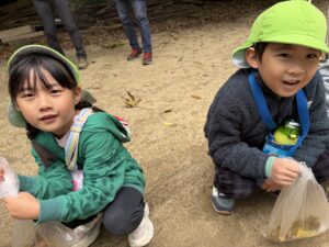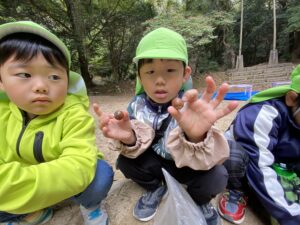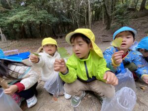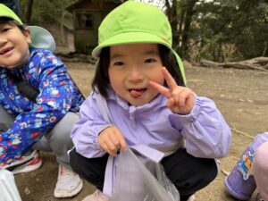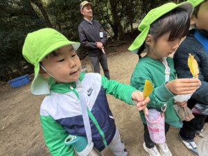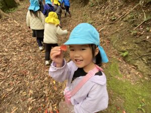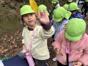 葉っぱや石ころ、木など落ちている山道を一生懸命歩きました。