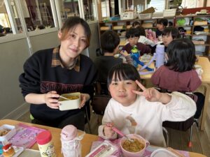 お母さんと一緒に給食を食べました😍
