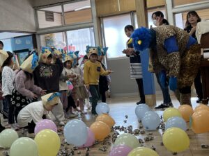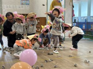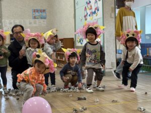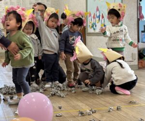 一緒に的あてゲームした後、豆まき開始‼😄
