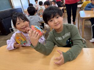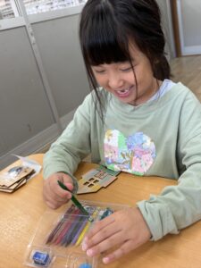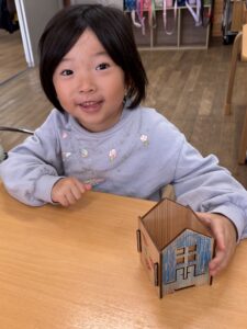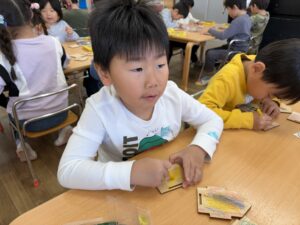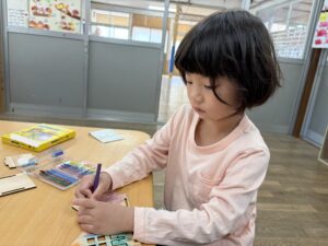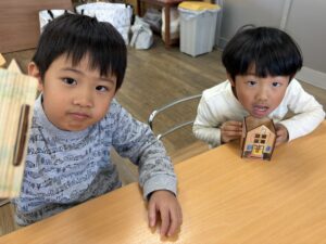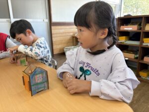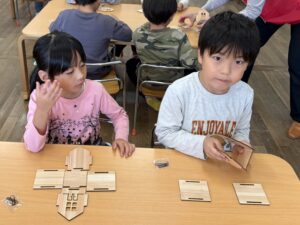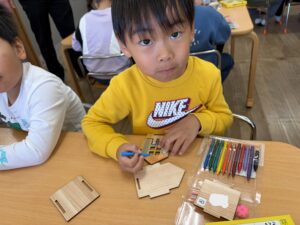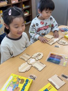 色塗りが完成したお友達は組み立ての準備を自分たちではじめました。