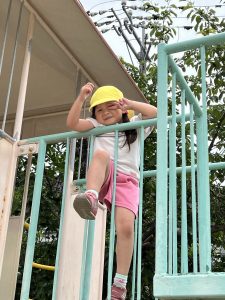 滑り台の上から「やっほー」