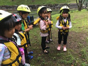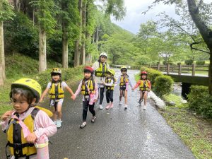 最初は怖くて「いやだ!」と言っていましたが一人ができるとみんな足を池の中に入れました。